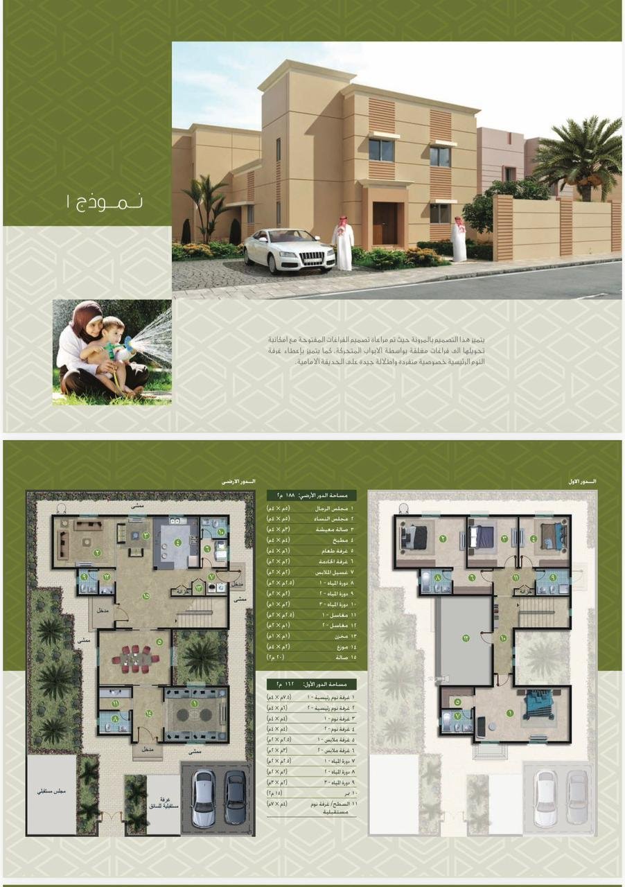 فيلا للبيع في حي الربيع بالمطرحية بـ الجبيل الصناعية، مساحة 508م بتصميم سابك تايب 1 وحوش واسع وكراج لسيارتين.